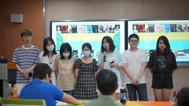 这次展演是该专业学期考核季的压轴环节。在放映期间,学生们以答辩的形式阐述各组拍摄过程中的编剧思路亮点,并就老师提出的专业问题做现场回答。