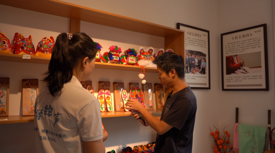 “作为一名服设专业的学生,能够近距离学习像豫南刺绣女红、鞋垫、虎头鞋等非遗文化品,我感到非常激动,这还是我第一次接触非遗文化产品,回到学校后我会加强专业技术学习,以实际行动发扬和传承我们的非遗文化。”服设专业志愿者于笑贺表示。