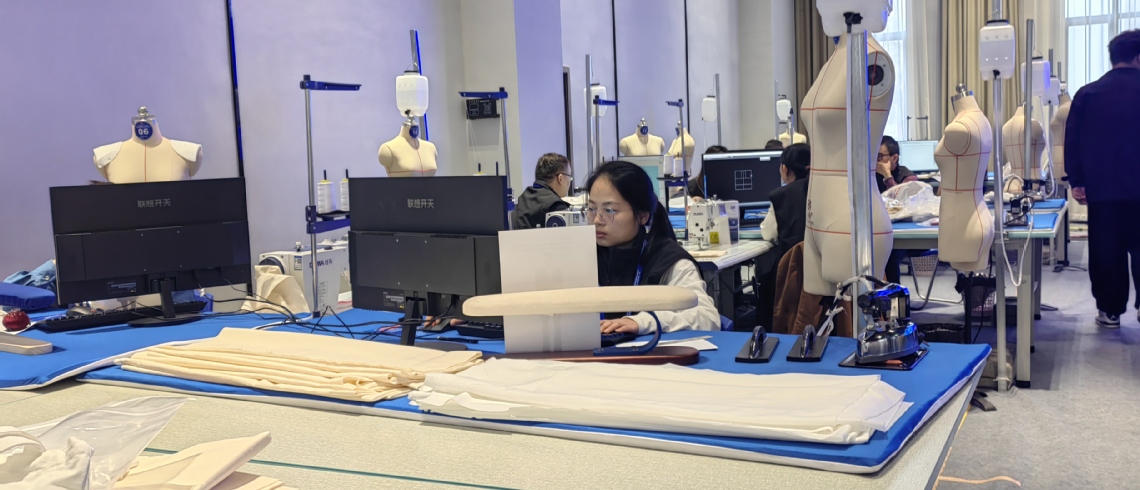 时装技术赛项以国家职业技能标准中服装制版师的考核为竞赛标准,比赛时长15小时,以女装为考核对象,内容包括服装CAD制版、样衣制作、立体裁剪、安全生产四个模块,重点考查参赛选手根据设计主题和流行趋势进行时装设计并转换为服装成品的技术水平。共有16家企业和院校选手参与角逐。