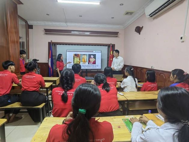 新闻网讯(通讯员 王莉诗)11月24至29日,应柬埔寨创目学校邀请,由对外合作与交流处处长张子一,时尚与传媒学院院长戴冬秀、副院长孔莉以及服装与服饰设计专业骨干教师共五人组成武汉职业技术学院代表团,远赴柬埔寨开展课程建设交流以及跨境校企合作、国际交流合作研讨。期间,武汉职业技术学院“荆楚工坊(柬埔寨)”正式揭牌运行。