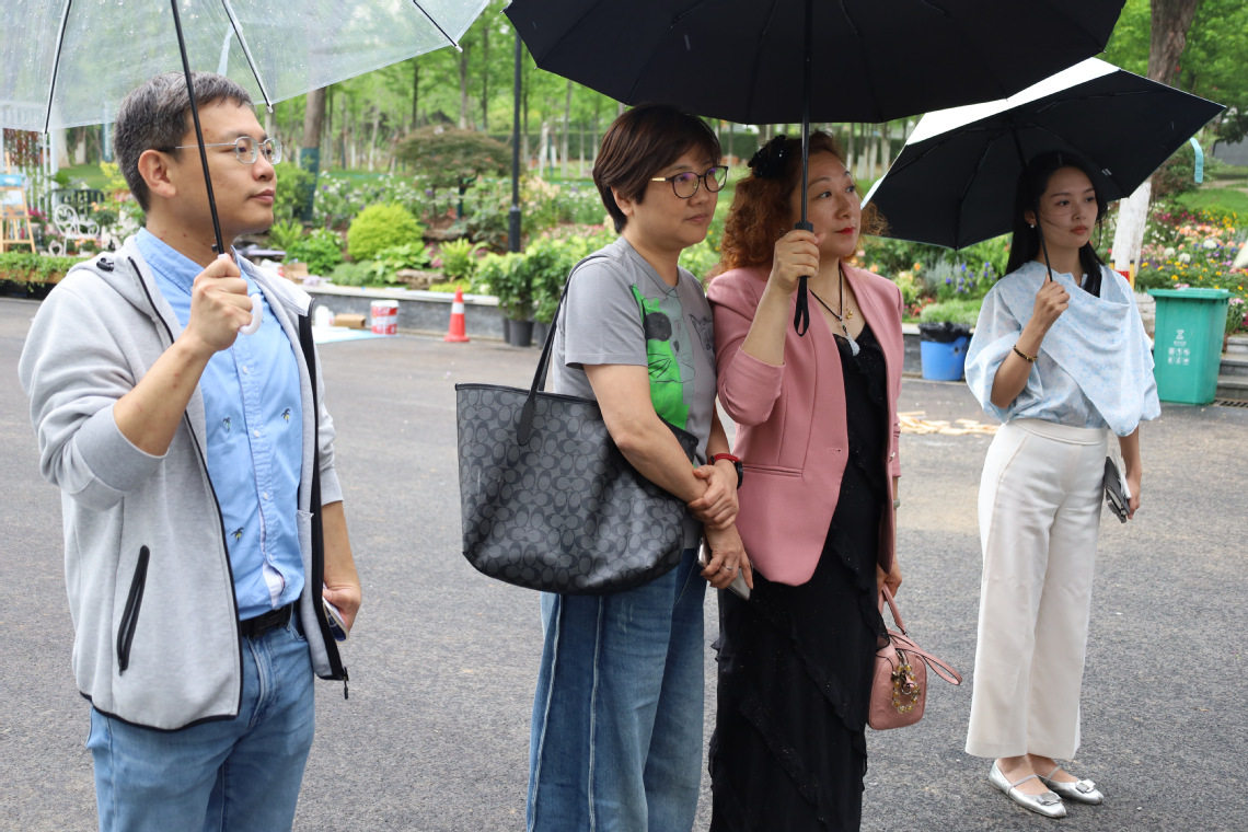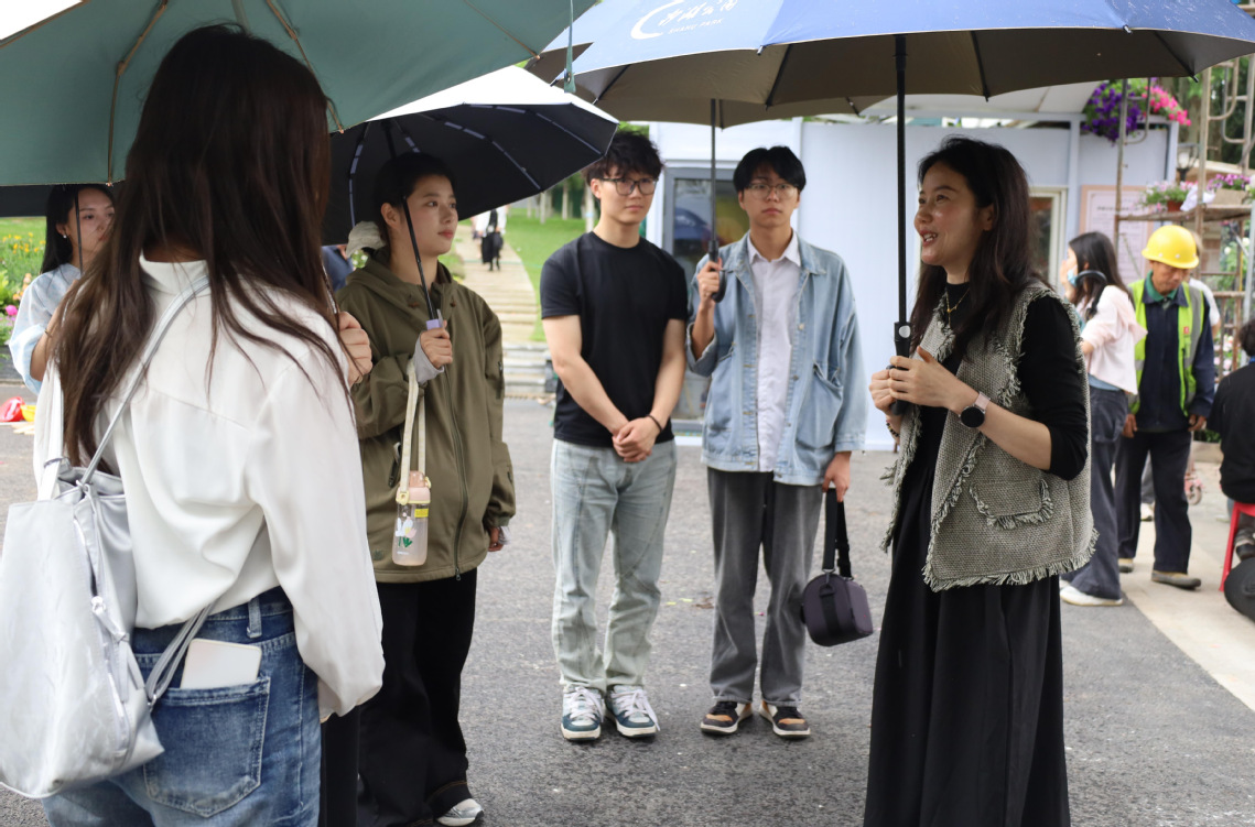 在沙湖公园管理处游客中心负责人、金牌讲解员但丽娟的引导下,学院师生一行深入世界花园大会展区,观摩园林艺术布展细节。但丽娟通过现场示范沉浸式讲解服务,从内容编排、语音把控到互动技巧进行全流程展示,学生们跟随体验,在花影长廊、粉雾花岛、月季探秘园等特色展区进行模拟讲解,亲身体验文旅讲解员“传声筒”“文化桥”的双重角色价值。