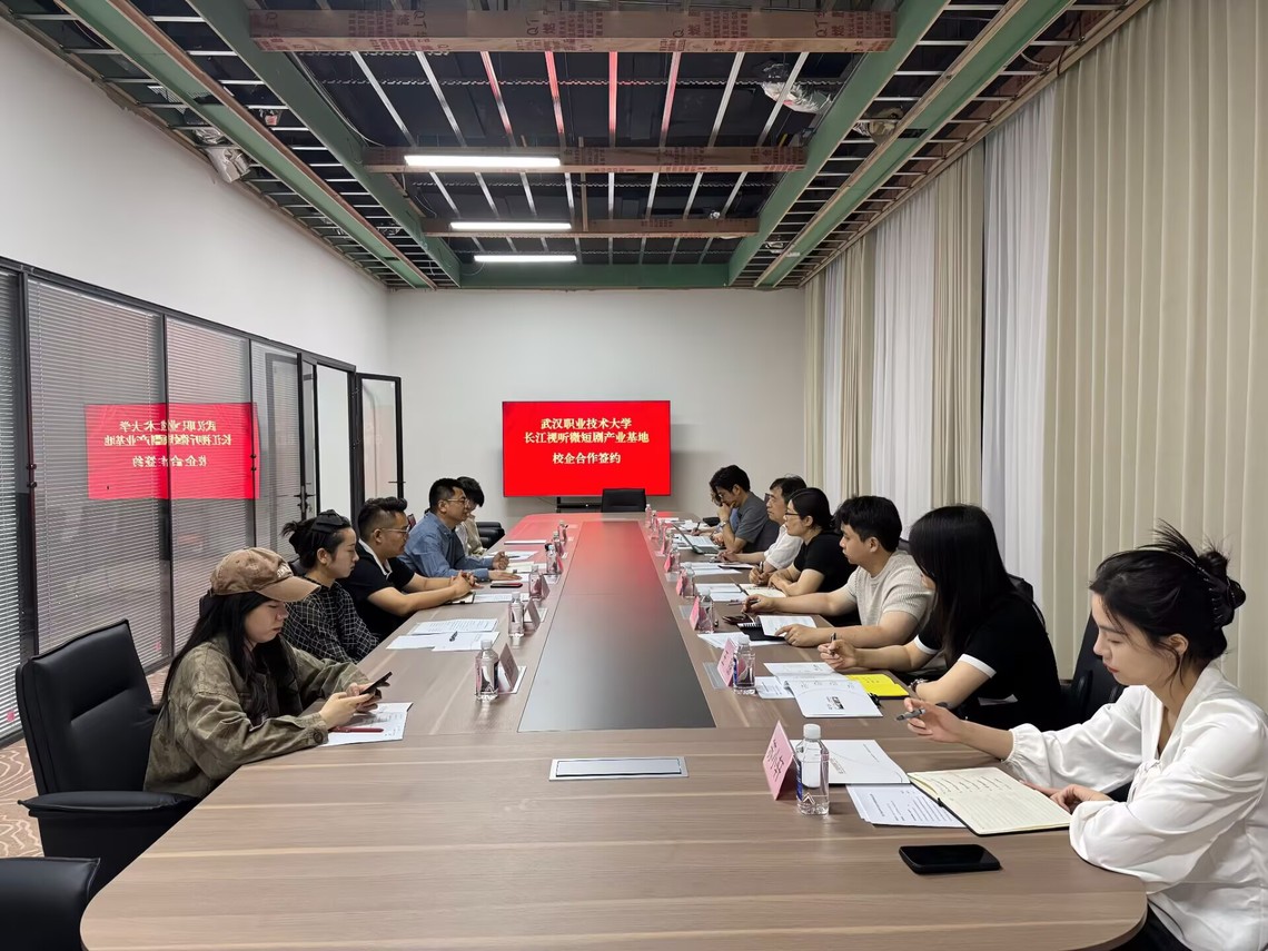 新闻网讯(通讯员 冯芳、陈陶 摄影 邹慧铃、许焘)5月14日,武汉职业技术大学党委副书记胡象斌率时尚与传媒学院党委副书记陈玲玲以及影视编导、时尚表演与传播等专业骨干教师一行9人,赴长江视听微短剧产业基地(以下简称:基地)开展访企拓岗,签署校企合作框架协议,共同为“产学研合作基地”(校企联合创新中心)揭牌,推进产教深度融合,赋能地方文化产业发展。