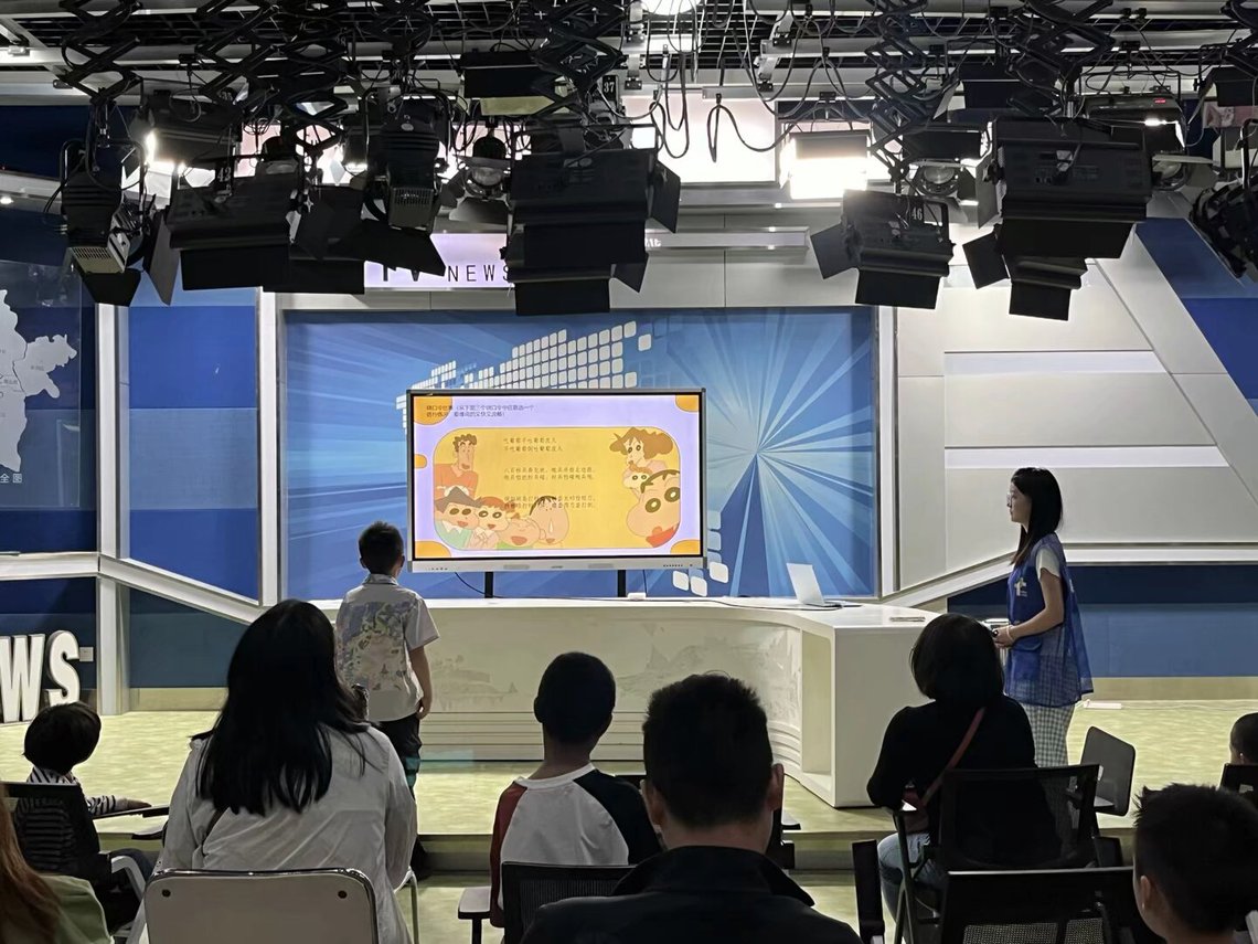 “小嘴巴张大,跟我一起读……”5月11日上午,凌峰楼C31教室里童声郎朗,来自保利时代社区的20余名儿童,在2024级播音与主持专业学生志愿者的带领下开启语言艺术启蒙之旅。
