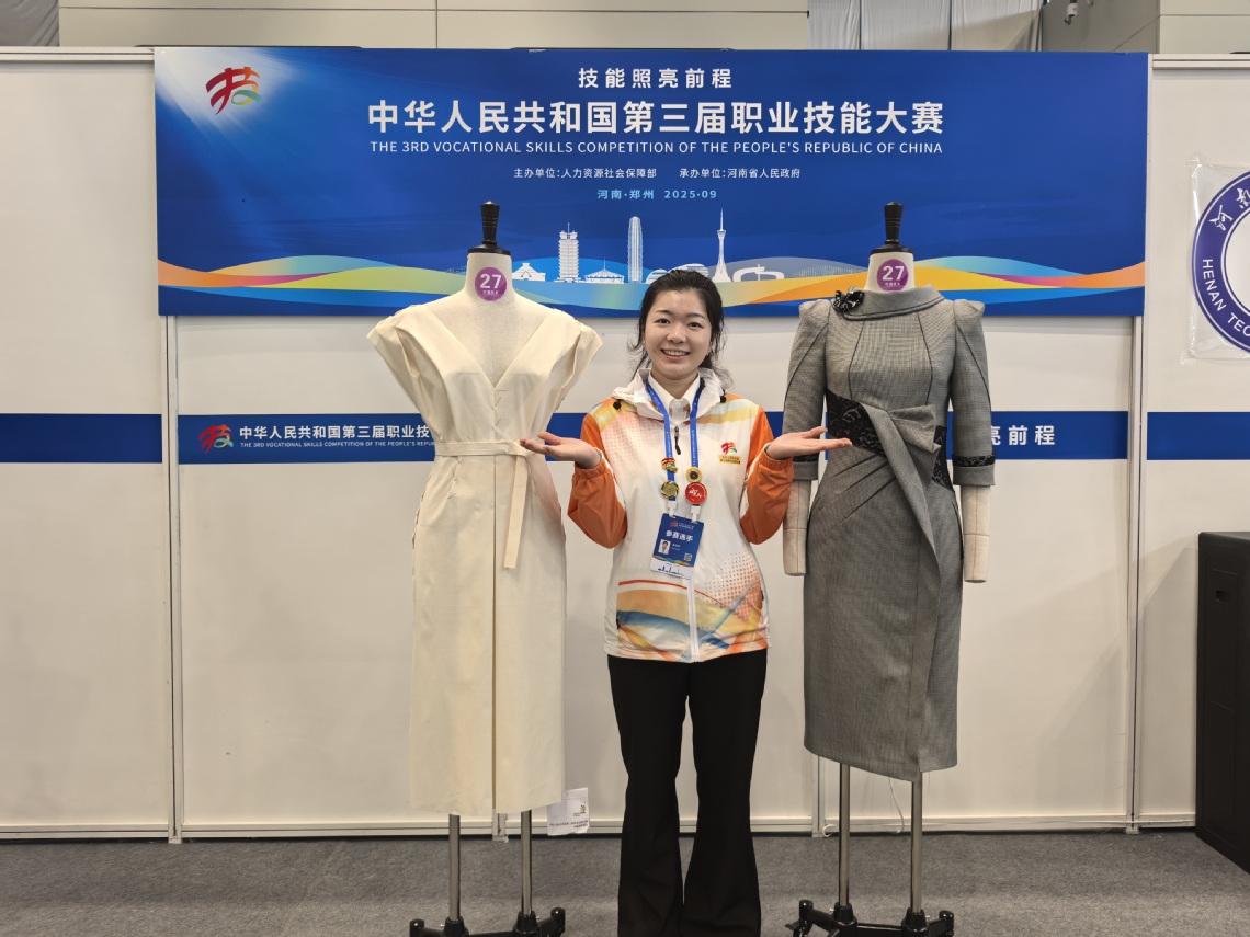 新闻网讯(通讯员 娄修明、王莉诗)近日,第三届中华人民共和国职业技能大赛圆满收官。武汉职业技术大学时尚与传媒学院学生张依依以扎实的技艺功底、巧思迭出的创新设计与赛场上的从容表现,从全国众多顶尖选手中突围,最终以全国第七名的优异成绩斩获时装技术项目优胜奖,成功入选第48届世界技能大赛国家集训队,用实力彰显了新时代青年技能人才的专业素养与拼搏担当。