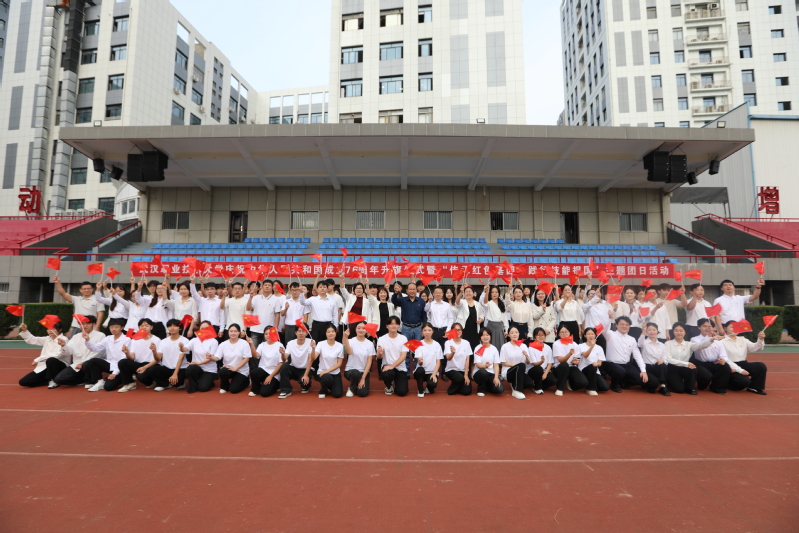 新闻网讯( 通讯员魏子汉 摄影王诚、张马涛、朱印) 秋阳初升,旌旗飞扬。9月29日清晨,武汉职业技术大学“传承红色基因 践行技能报国”主题升旗仪式在光谷校区田径场举行。副校长刁元斌出席仪式,学生工作处、团委负责人,时尚与传媒学院全体政工干部,各二级学院师生代表共两千余人齐聚现场,共同致敬祖国华诞,传承红色薪火。升旗仪式由校团委主办,时尚与传媒学院党委副书记陈玲玲主持。