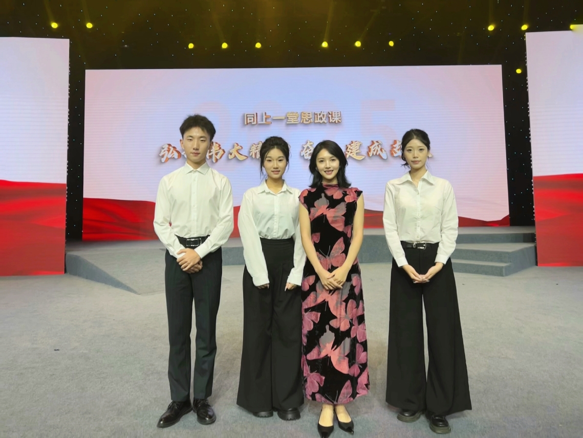今年三月,冯麟然带领四位播音主持专业学生代表学校深入参与“湖北省大中小学共上一堂思政课”活动,思政的红色种子在师生心间深埋。冯麟然表示,“9月28日这堂思政课突破了传统模式,打造了一场可看、可听、可感、可思的沉浸式体验。它让学生真正‘走进’了历史,‘触摸’到了精神,这种直观而深刻的教育效果,是课堂教学的有力补充和升华。”对于学校播主专业的学生而言,这不仅是一次思想的洗礼,也是一次宝贵的专业观摩,他们亲身感受到了语言与舞台艺术的巨大感染力。