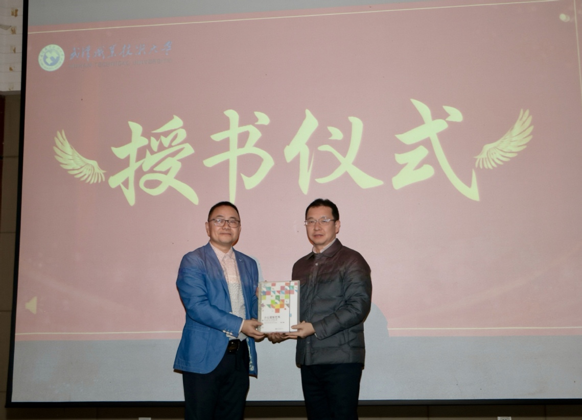 紧接着,现场举行授书仪式,校企双方共同发布合作编写的少儿播音主持教材,这既是课程共建成果的进一步落地,也为后续教学资源优化与共享筑牢基础,让产教融合的成果更具象、可落地。