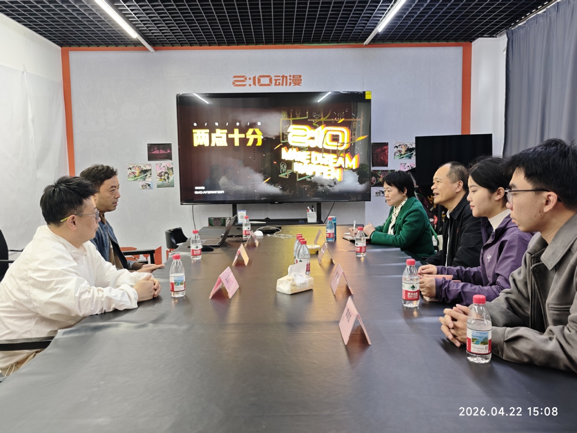 访企团队一行先后参观了企业文化展厅、动画全流程制作中心、人体动作捕捉实验室及“拂晓计划”培训基地,现场听取了企业关于发展历程、核心业务布局、原创IP孵化全链路及青年人才培养模式的介绍。双方还就企业真实项目进课堂、校内创新创业实践平台建设等进行了现场交流。