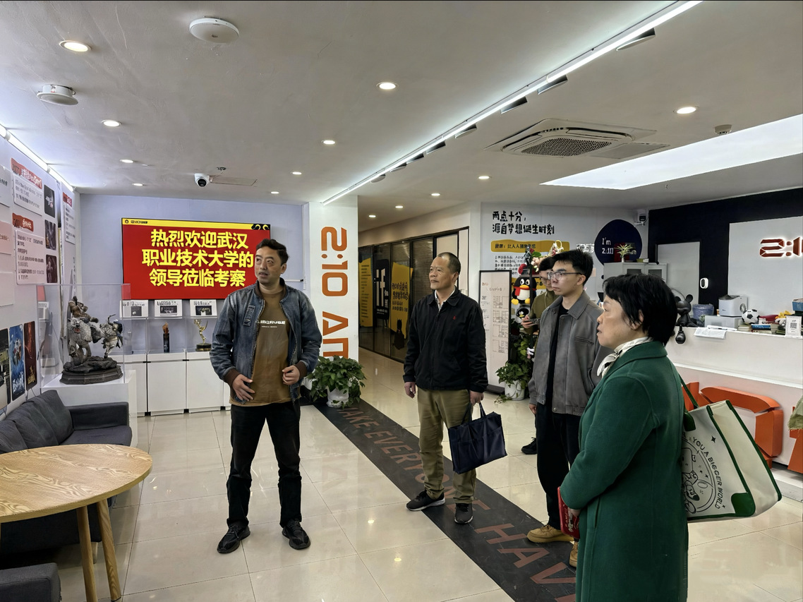 4月22日,武汉职业技术大学时尚与传媒学院党委副书记邱文成率学院骨干教师一行,赴武汉两点十分文化传播有限公司(以下简称“两点十分”)走访调研,与公司副总经理韩强等企业负责人深入洽谈产教融合协同育人相关事宜,共同推动双方事业高质量发展。